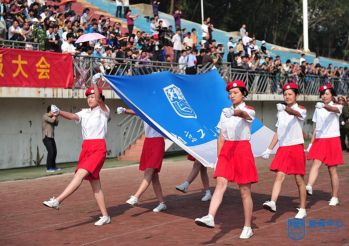 上午9点汇报大会正式开始。校党委书记王德明教授在军训总指挥的陪同下,检阅了每一个参训的新生方队。6477名学员用充满激情的口号展示了2011级新生的蓬勃朝气。随着军训指挥员一声令下,分列式开始。全体参训学员排着整齐的方队,迈着矫健的步伐,斗志昂扬地正步从主席台前正步走过,接受校领导和嘉宾的检阅。“明德厚学 沉毅笃行……”,洪亮的口号响彻校园。在男女生一套、二套军体拳表演中,同学们用整齐划一的动作、威武帅气的身姿一次次地征服了观众,田径场上响起阵阵热烈掌声。在拉歌展示中,男女生方阵你来我往,拉歌赛歌,表现出新生军训学员特有的青春朝气和浓厚情谊。整个汇报表演十分成功,全体新生用实际行动向大家汇报了两周军训洗礼取得的丰硕成果。